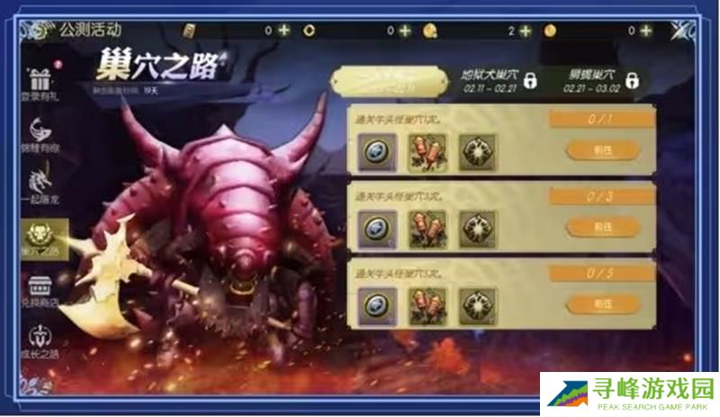 完成牛头怪巢穴、地狱犬巢穴(经典/地狱/挑战)、狮蝎巢穴(经典/地狱/挑战)通关条件,可获得梯度奖励。