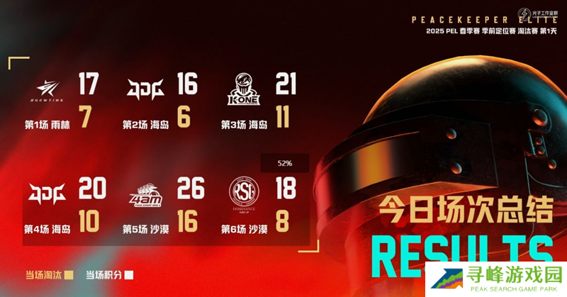 和平精英2025PEL春季赛季前定位赛突围赛Day1比赛已经结束,当天战报如下: