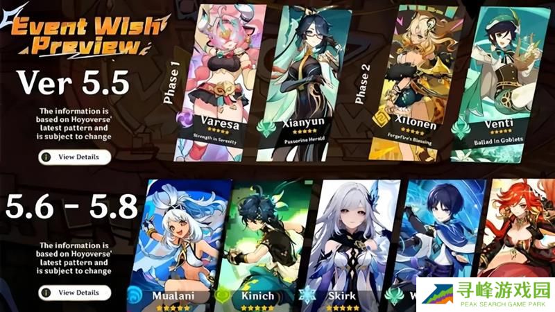 据网传消息,5.6版本卡池将有冰后台女辅爱可菲与火系法器角色伊法登场,5.7版本卡池则是丝柯克与塔利雅双冰角色同时出现。至于5.8版本,目前虽有诸多猜测,但官方尚未明确,不过有消息称该版本可能迎来新角色空降,且新皮肤或为夜兰的,这无疑让众多旅行者充满期待。