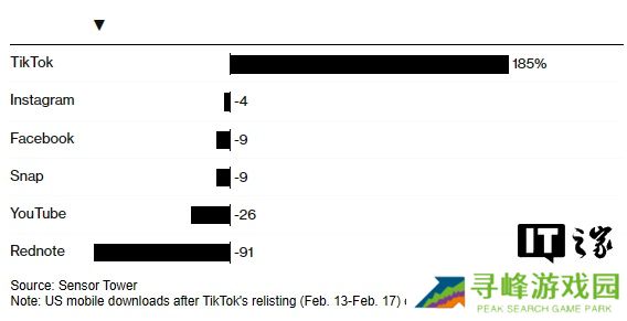 本站 2 月 21 日消息,据彭博社报道,自 TikTok 重新上架美国苹果 App Store 应用商店和谷歌 Play 应用商店以来,其竞争对手小红书的下载量出现了断崖式下跌。