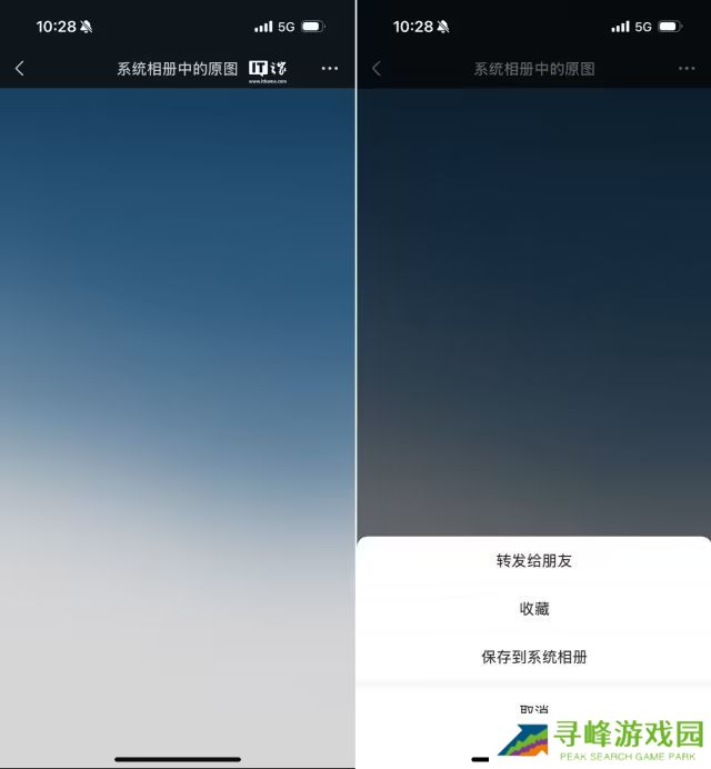 点击该按钮,图片会在“系统相册中的原图”界面中显示,点击右上角的“...”,可以转发给朋友、收藏、保存到系统相册。