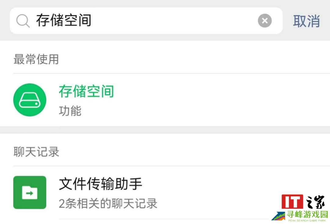在微信搜索框输入“存储空间”,可看到其功能选项,点击可一键直达存储空间管理页面。