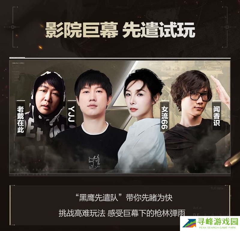 为了给玩家提供前所未有的沉浸感,《三角洲行动》特设影院巨幕先遣试玩环节。知名主播YJJ、女流66、老戴在此及闻香识将组成“黑鹰先遣队”,在高难度挑战下尝试协作通关。观众不仅能通过大屏幕感受枪林弹雨的紧张刺激,还能见证这些游戏达人如何应对重重难关。