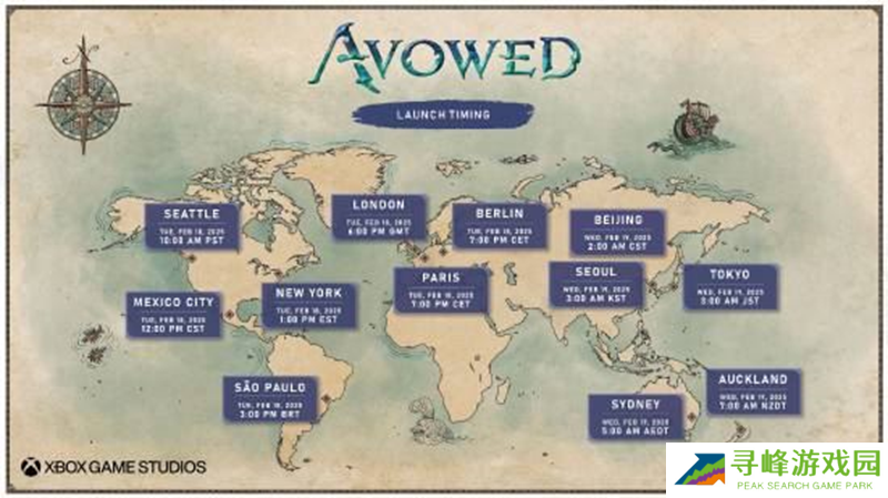 宣誓是由黑曜石娱乐(Obsidian Entertainment)开发、Xbox Game Studios发行的一款第一人称奇幻动作角色扮演游戏,今天游戏公布全球发售时间图。本作国区将于2月19日凌晨2点解锁,现已开启预载。