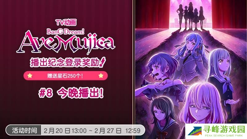 此外,为庆祝《BanG Dream! Ave Mujica/颂乐人偶》动画的播出,游戏内还同步开展了登录奖励活动。自2025年1月9日起,每周随着动画的播出,玩家登录游戏即可领取「星石×250」的奖励。