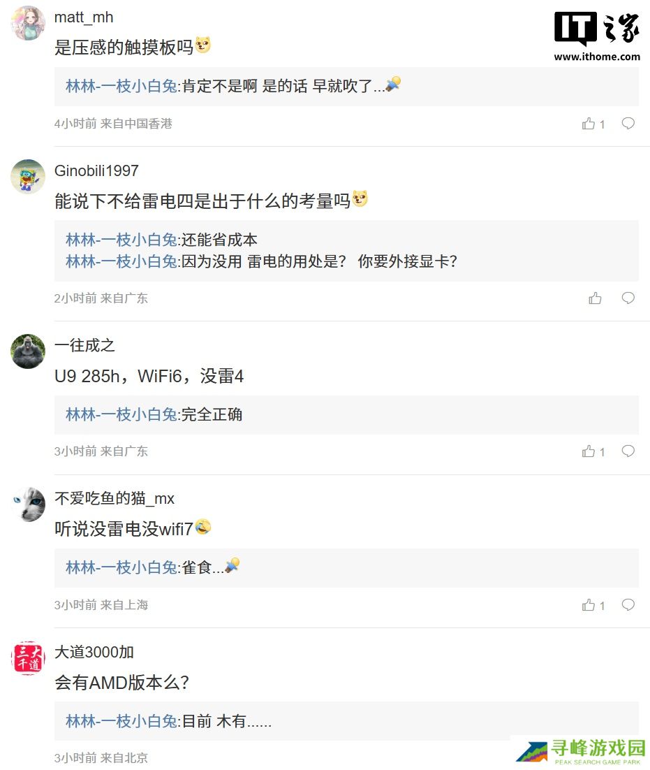 林林还在评论区回复了部分网友的问题:针对新机价格,他表示“肯定不便宜”;针对新机是否可以和华为互联,他回复“你猜,不仅仅和华为,你猜还能跟谁?”;针对是否没有雷电 4 接口,并采用 WiFi 6,他称“完全正确”。