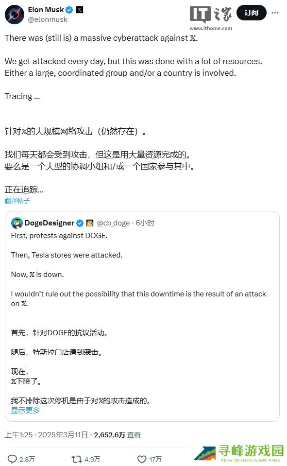 马斯克称其 X 平台遭受大规模网络攻击,而 IP 源自乌克兰