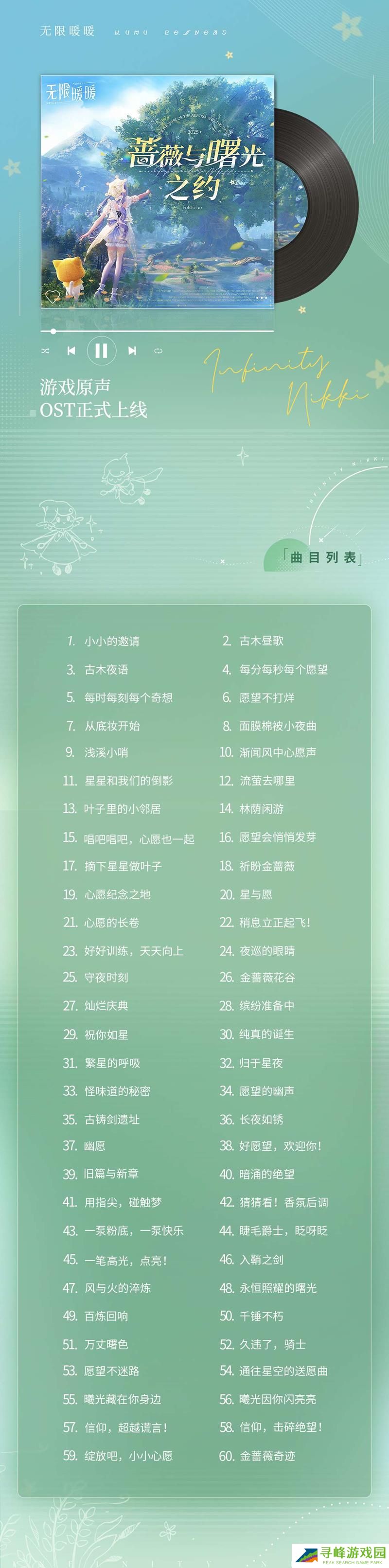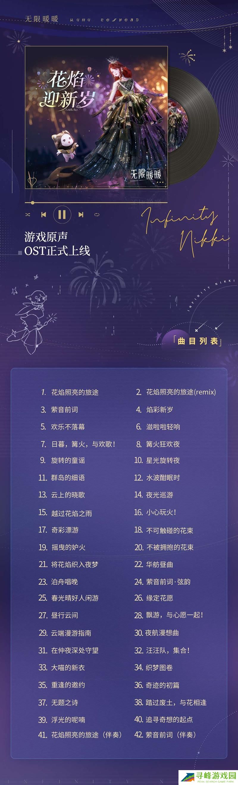 《无限暖暖》官方宣布游戏全新OST正式上架音乐平台,首次有《无限暖暖——蔷薇与曙光之约》、《无限暖暖——流星点亮的心愿》、《无限暖暖——花焰迎新岁》三部OST正式上架,包含百余首游戏内原声音乐,给各位玩家以听觉上的享受。