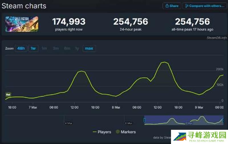 今日,《双影奇境》在Steam平台的同时在线人数峰值达到了25.4万。峰值是前作《双人成行》的3.5倍,这一成绩不仅刷新了EA旗下付费游戏在Steam的历史记录,更是将此前的保持者《战地5》的11.6万在线峰值远远甩在身后。