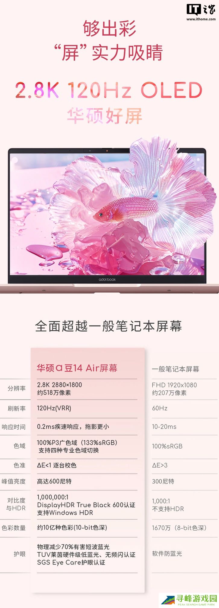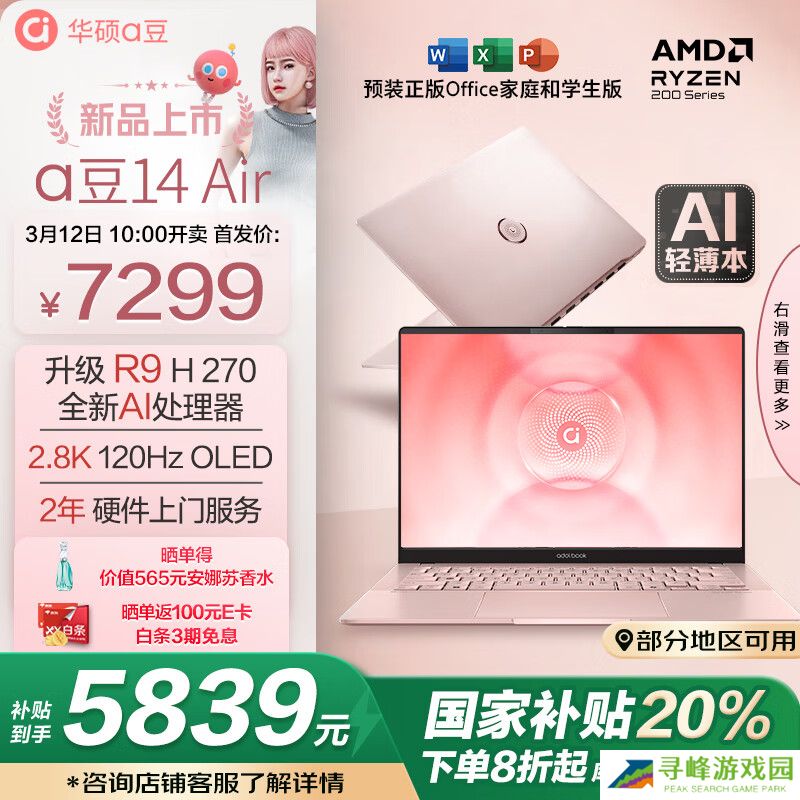 2025 款华硕 a 豆 14 Air 香氛版笔记本首销:锐龙 9 H 270 配 2.8K 120Hz 屏售 7299 元