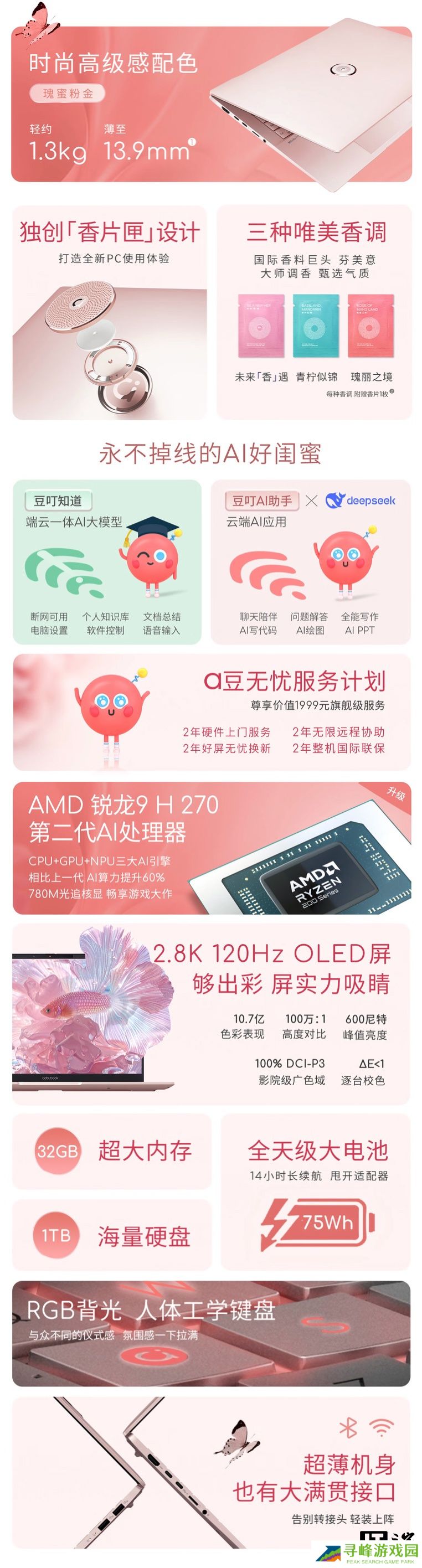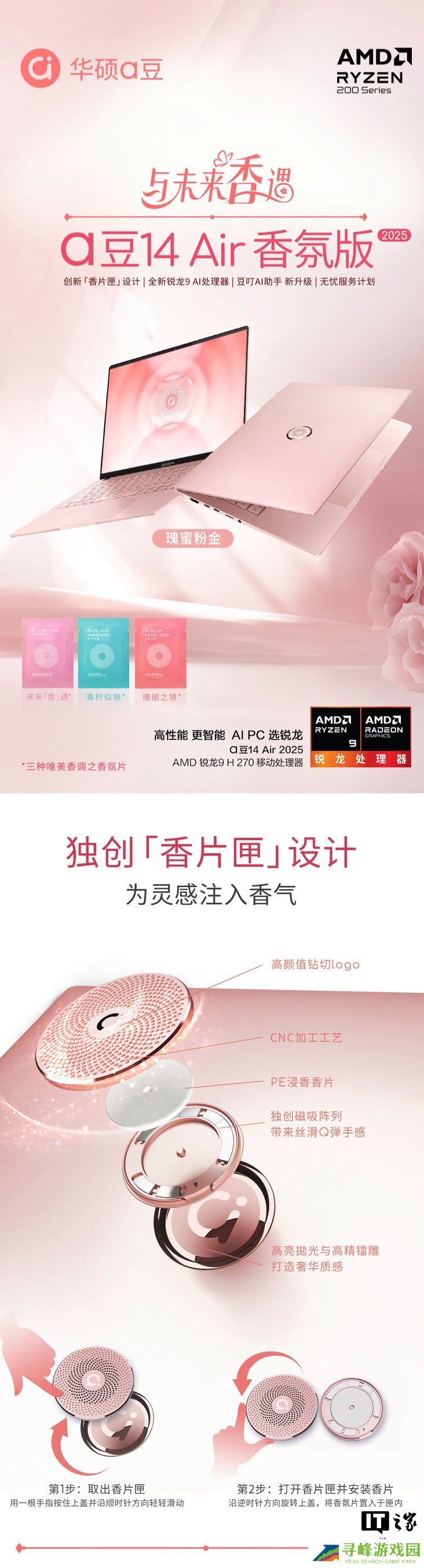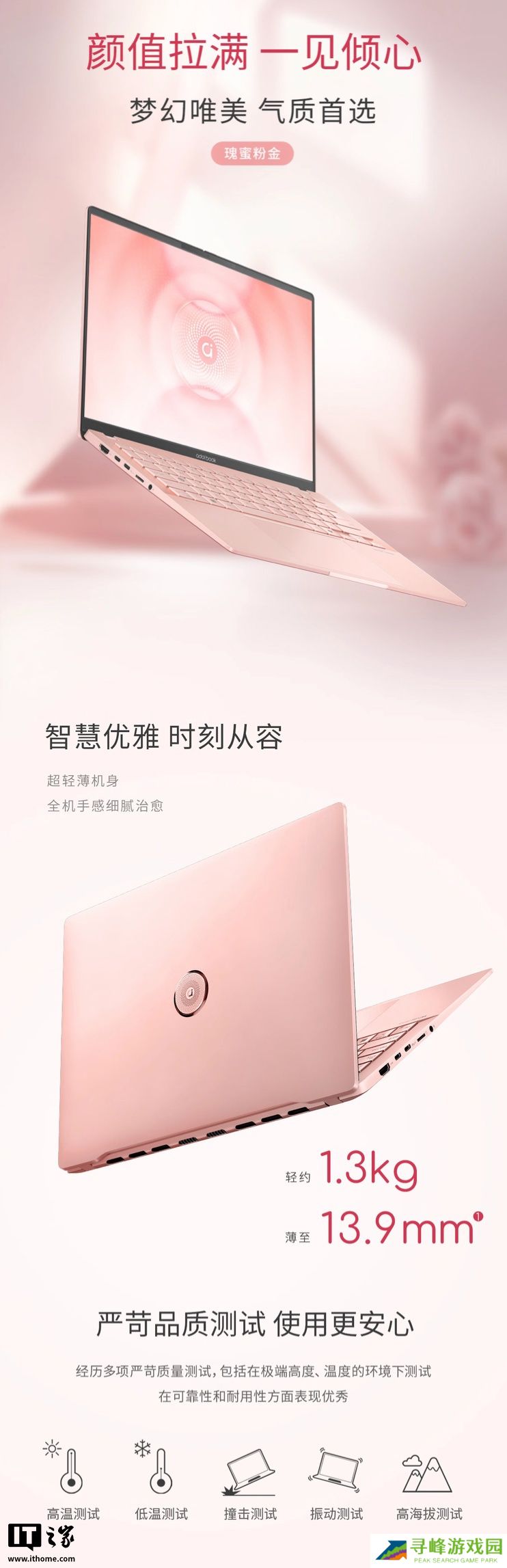 本站获悉,这款笔记本采用粉色外观,整体重量1.29千克,厚度13.9毫米,主打“香片匣”设计,用户可以为笔记本安装香片(可选三种气味),从而能够让笔记本散发出香味;其内置75Wh电池,至高可连续播放17小时视频。