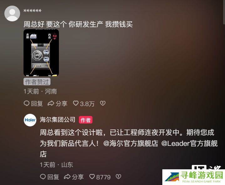 海尔官方回应称,周云杰已经看到了这个设计,并让工程师连夜开发中,最后还“期待”这名网友成为该新品的代言人。
