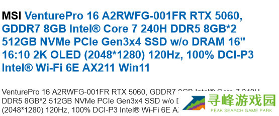 除上述宏碁笔记本外,188号 @momomo_us 还发现了另一款搭载 RTX 5060 8GB笔记本电脑 GPU 的微星笔记本的信息: