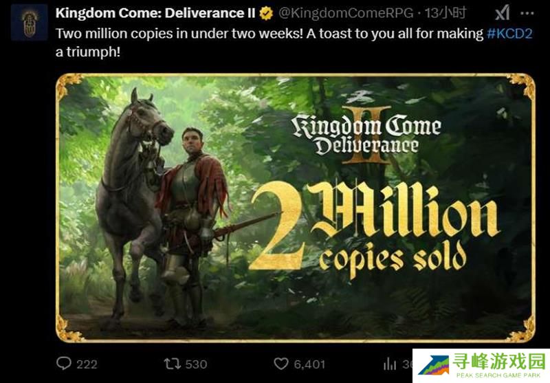 由战马工作室开发、Deep Silver 发行的中世纪开放世界角色扮演游戏《天国:拯救2》自2025年2月5日发售以来,便以惊人的速度赢得了玩家的青睐。截至昨日,全球销量已经突破200万份,创下了令人瞩目的销售里程碑。开发团队在社交平台上激动宣布:“为这场大获全胜致敬所有人!”