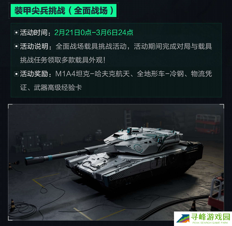 活动奖励: M1A4坦克-哈夫克航天、全地形车-冷钢、物流凭证、武器高级经验卡