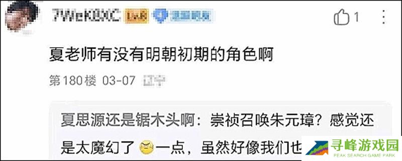 其中最引人注目的莫过于崇祯皇帝朱由检将在游戏剧情中登场,并且戏份还不少,一直持续到游戏接近结局时才结束。对于玩家提出的游戏中是否会包含明朝初期角色的问题,夏思源表示“崇祯召唤朱元璋”的想法虽然很有趣,但目前看来还是太魔幻了一些,尽管游戏本身的设定已经足够魔幻。