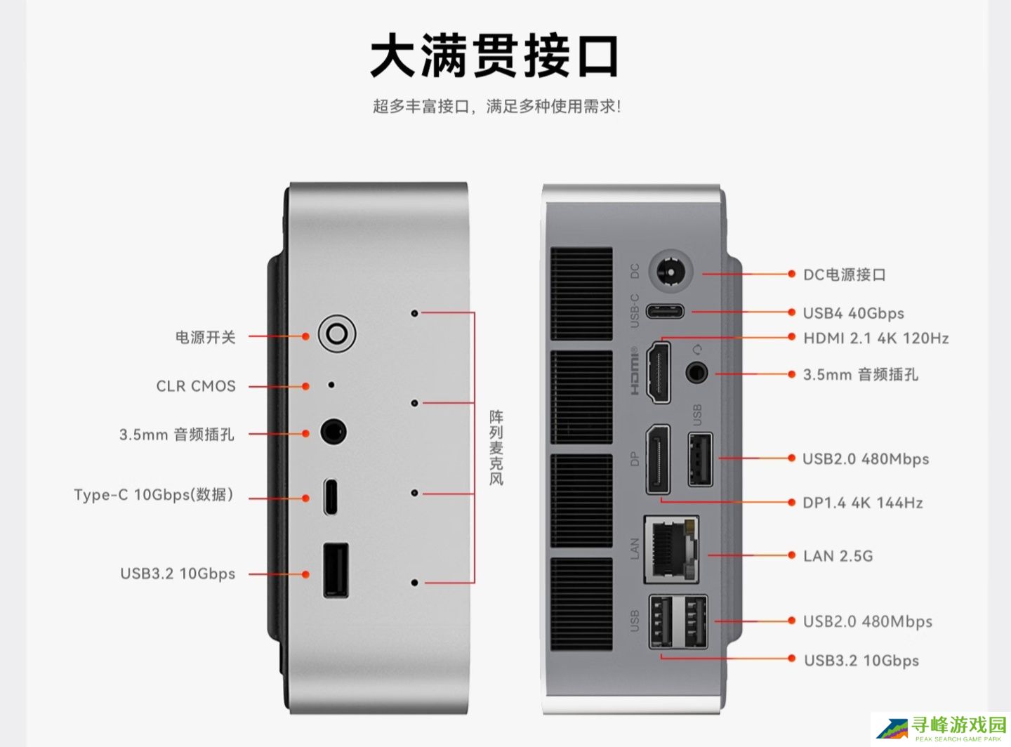 这款小主机采用了静音风扇,底部进风,CPU 性能释放稳定 65W;内置双扬声器 + 麦克风,支持 AI 语音交互。