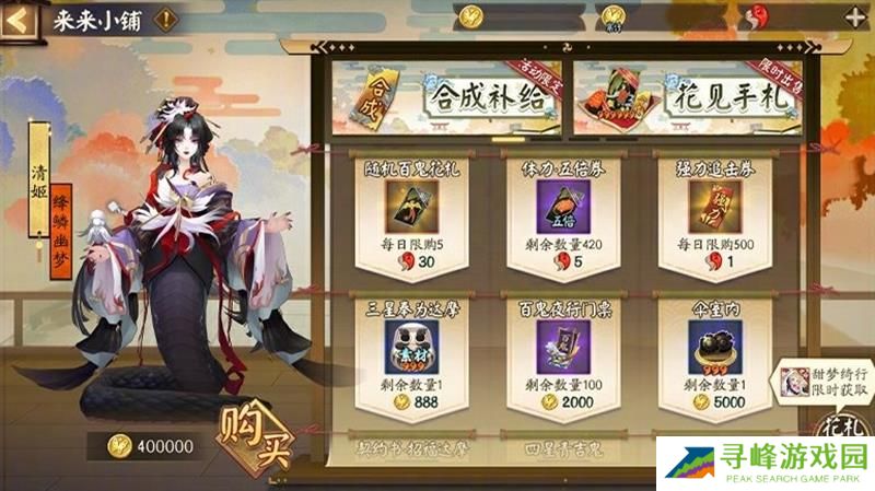 大人可通过参与活动获得「文点币」,在「来来小铺」中兑换丰富活动奖励。累计获得「文点币」达到一定数量可解锁更多可兑换奖励,包括SR阶式神清姬新皮肤「绛鳞幽梦」、随机SSR/SP式神召唤券、御行达摩、头像框等奖励。