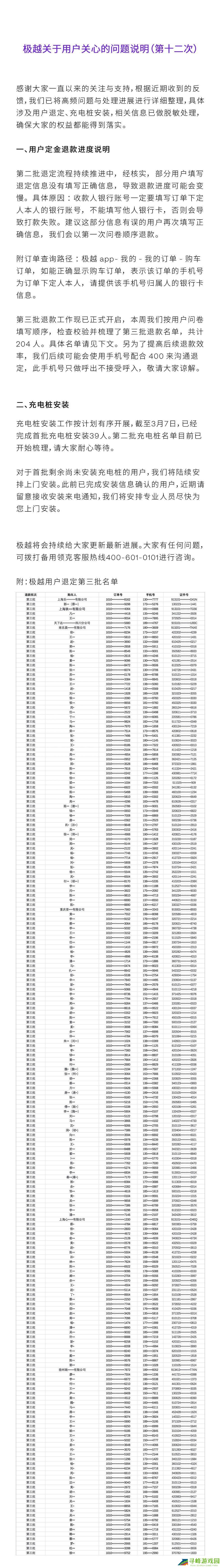 近日,极越公司针对用户关心的热点问题发布了第十二次说明,详细阐述了用户定金退款及充电桩安装的最新进展。