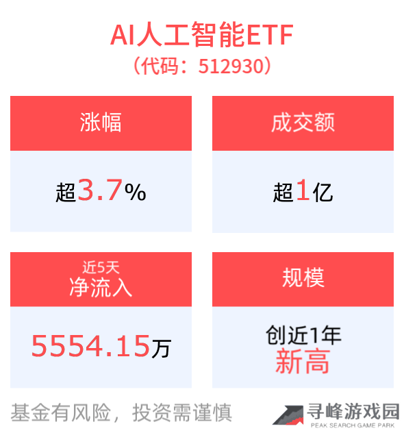 与此同时,中证人工智能主题指数(代码930713)也实现了3.56%的显著增长。其中,润泽科技(300442)和光环新网(300383)分别暴涨18.60%和17.56%,寒武纪(688256)再次发力,上涨13.50%,光迅科技(002281)、深桑达A(000032)等股票同样录得上涨。AI人工智能ETF(512930)紧跟指数步伐,上涨3.78%,最新报价为1.54元,盘中成交额突破1.68亿元,换手率10.76%,市场交投同样活跃。