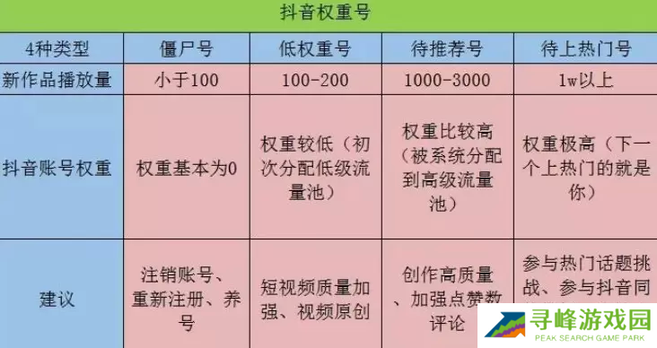 2、抖音账号的权重也会有级别之分,僵尸号、最低权重号、中途降权号、待推荐账号、待上热门账号、大V级账号;