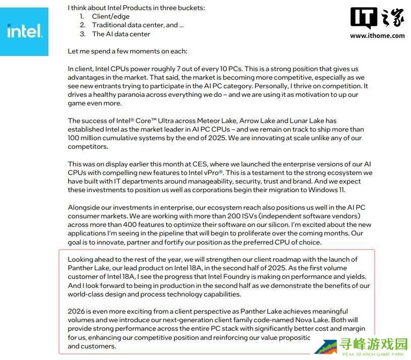 英特尔18A工艺上半年流片,Panther Lake处理器下半年投产望复兴