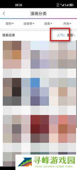 4.进入该分类后,点击搜索结果排序,【人气】或【更新】
