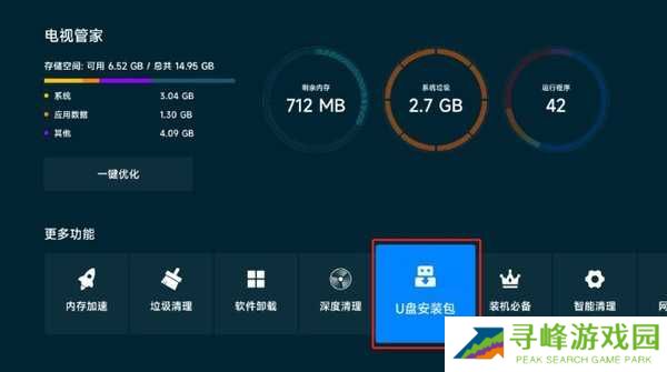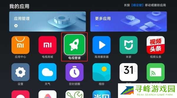 3.将U盘插到小米盒子上。选择【电视管家】。