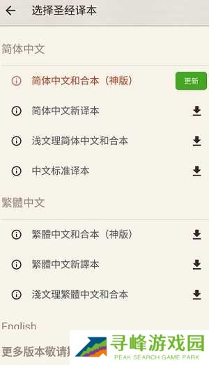 提供圣经译本的选择功能。