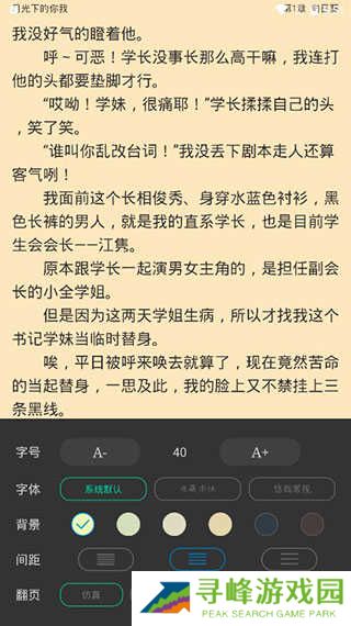 4、同时为便于用户阅读,你还可以自己搭配调整选择字体、背景、间距和翻页模式。