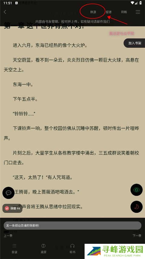 2、进入后点击屏幕中间,出现菜单栏,右上角位置点击换源