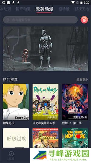 2、滑动屏幕,转换动漫类型模块,如欧美动漫