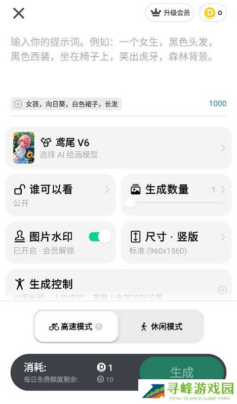 4、之后用户就需要打字描述出要绘画的人物形象,比如头发、脸型、嘴型、眼睛等等,输入完之后点击下方的生成就可以啦!