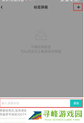 点击右上角的加号,输入需要屏蔽的标签,点击添加即可。