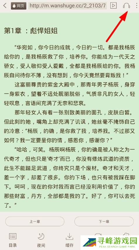 2、在阅读页面上点击屏幕的中心位置,然后在页面顶部右上角出现听力按钮(红色箭头指下图)