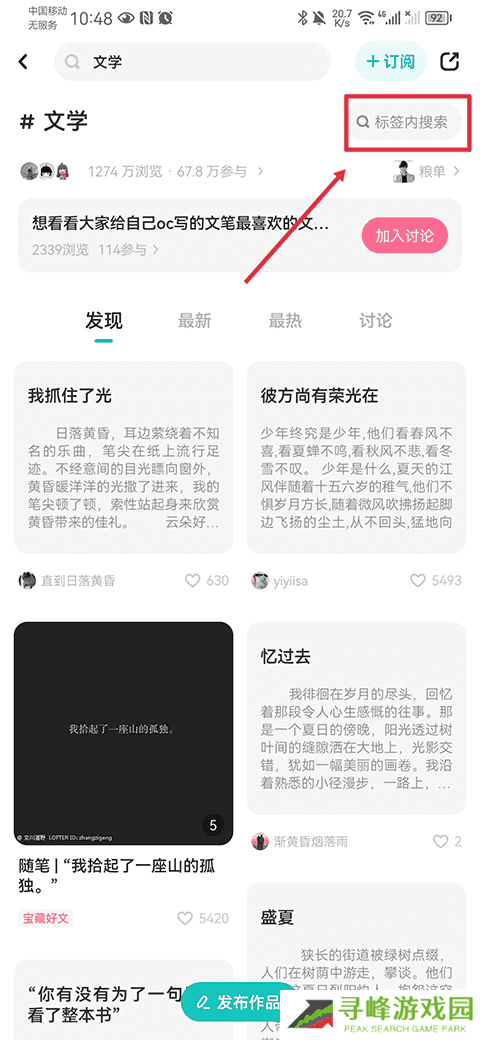 2、然后在标签页面中选择你感兴趣的小说标签,例如文学