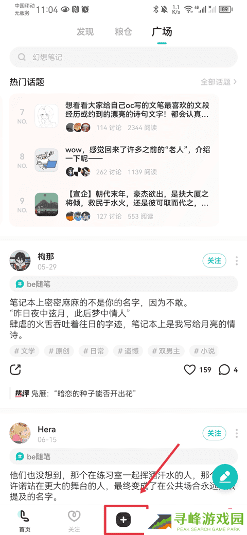 1、在老福特lofter小说软件下方栏目中点击黑色+号按钮