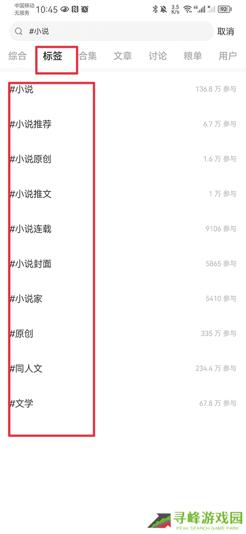 1、在首页搜索框内输入标签#小说
