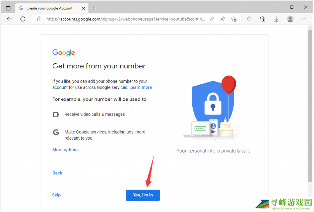 10、该页面主要是在未来可能会给您发布一些广告信息、以及把您的手机加入到Google账户来保证后期的安全。