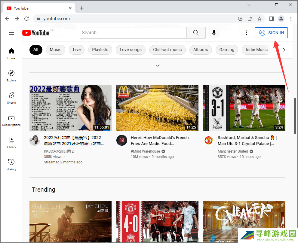 1、首先,我们先进入到YouTube的官网“www.youtube.com”(需要科学上网工具),然后点击YouTube右侧顶部的“SIGN IN”按钮。