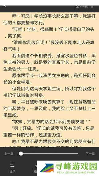 3、打开你喜欢看的书籍,app支持章节目录选择、夜间模式、自定义调整亮度等功能。