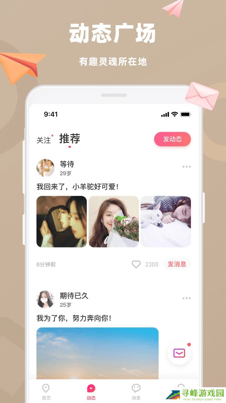 在动态界面中可以观看大家的动态内容,认识朋友