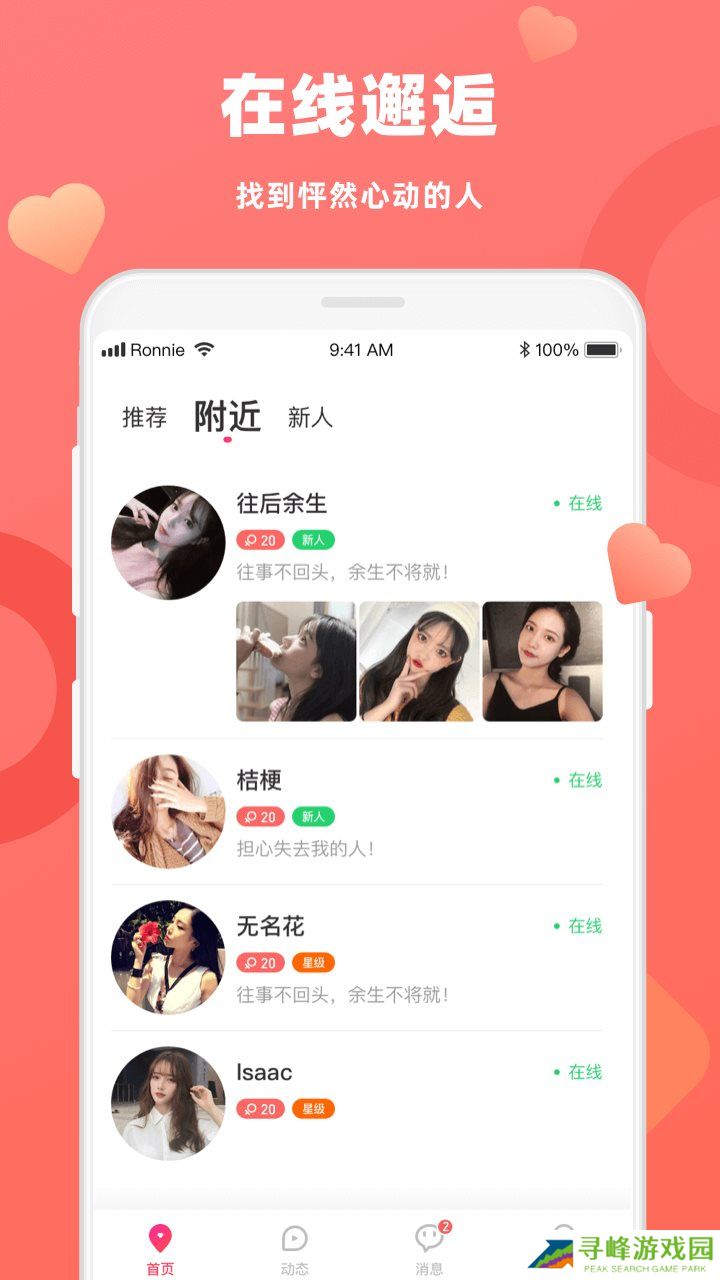 4、附近的人,在定位之后就可以看到附近的人,同城的有缘人可以快速的认识。