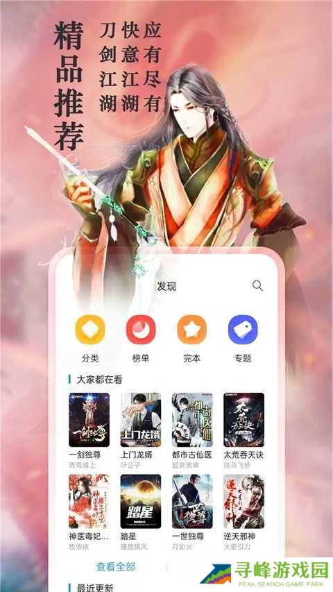 1、使用笔趣阁纯净版App可通过书城和分类快速找到你想要看的小说和漫画。