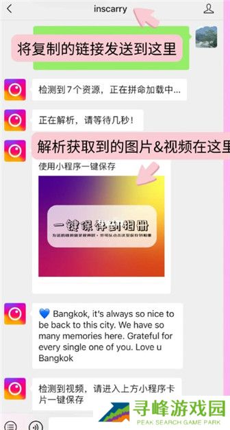 2、将复制的链接粘贴到inscarry的聊天窗口并发送