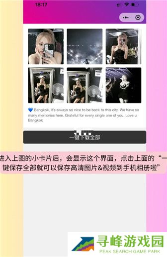4、进入上图的小卡片后,显示这个界面,解析完成后根据引导进入存图卡片一键保存高清图片视频到手机相册