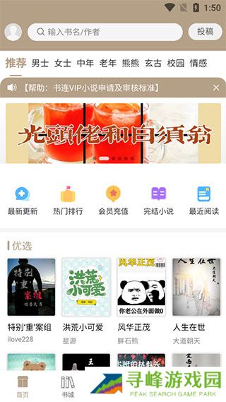 3、登录后可以享受更多内容,首页有各种推荐的好书和优选作品,顶部的众多分类可以快速筛选自己喜欢的。