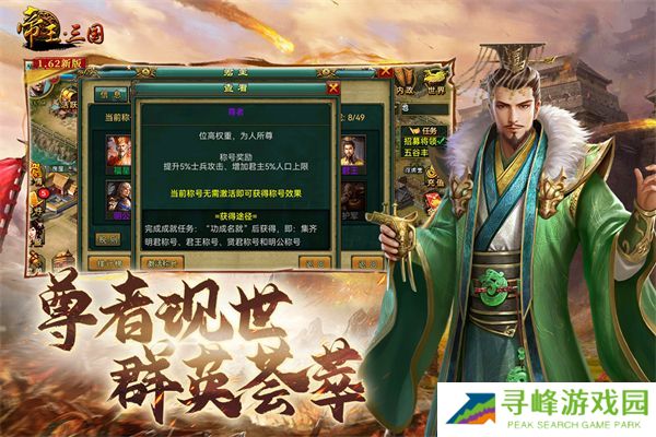 聚五湖豪义,共建玩家自己的国度,最终消灭所有NPC国家,一统天下