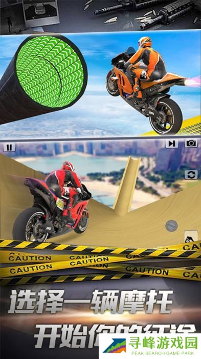 游戏亮点摩托车碰撞模式:赛车模式,生存坑和淘汰赛